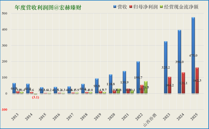 观察经营性现金流和净利润的对比,前者(绿色柱图)始终能够等于或大于归母净利润(红色柱图)为优。