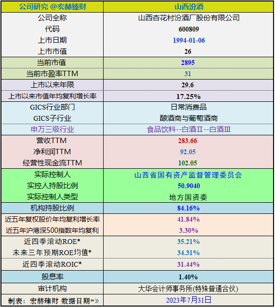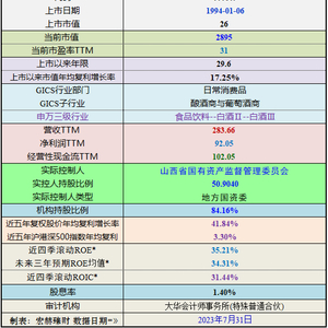 山西汾酒 自上市以来29.6年的光阴里,市值由26亿走至当前的2895亿。市值年均复利增长率为17.25%,复权股价年化回报率为18.79%,同期上证指数年化回报率为 4.59%。