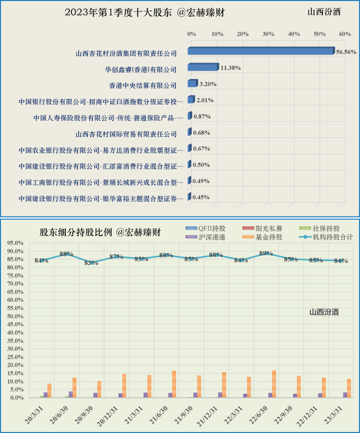 注:图中柱图为部分机构持股;折线为全部机构持股比例。