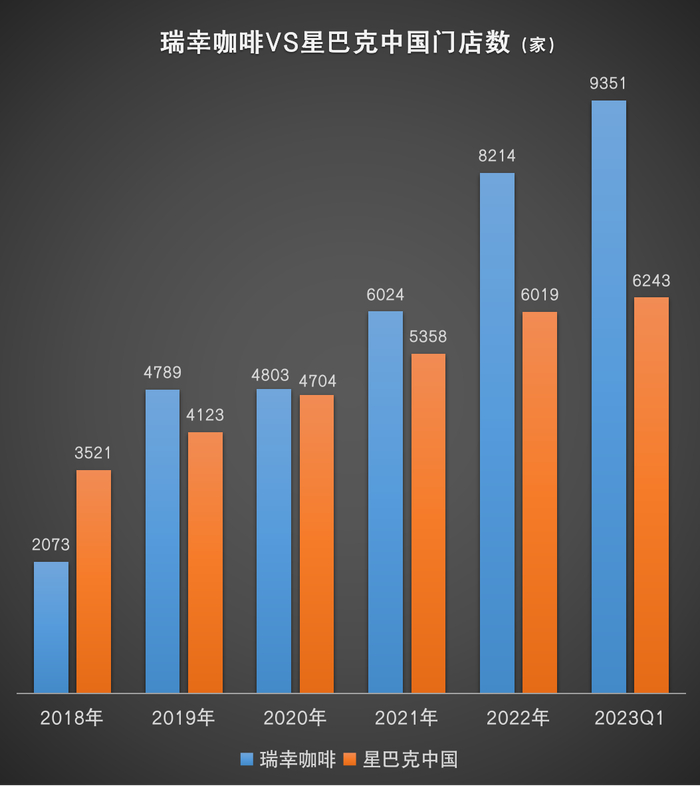 如果只对比两家在中国市场的门店数量,瑞幸领先。