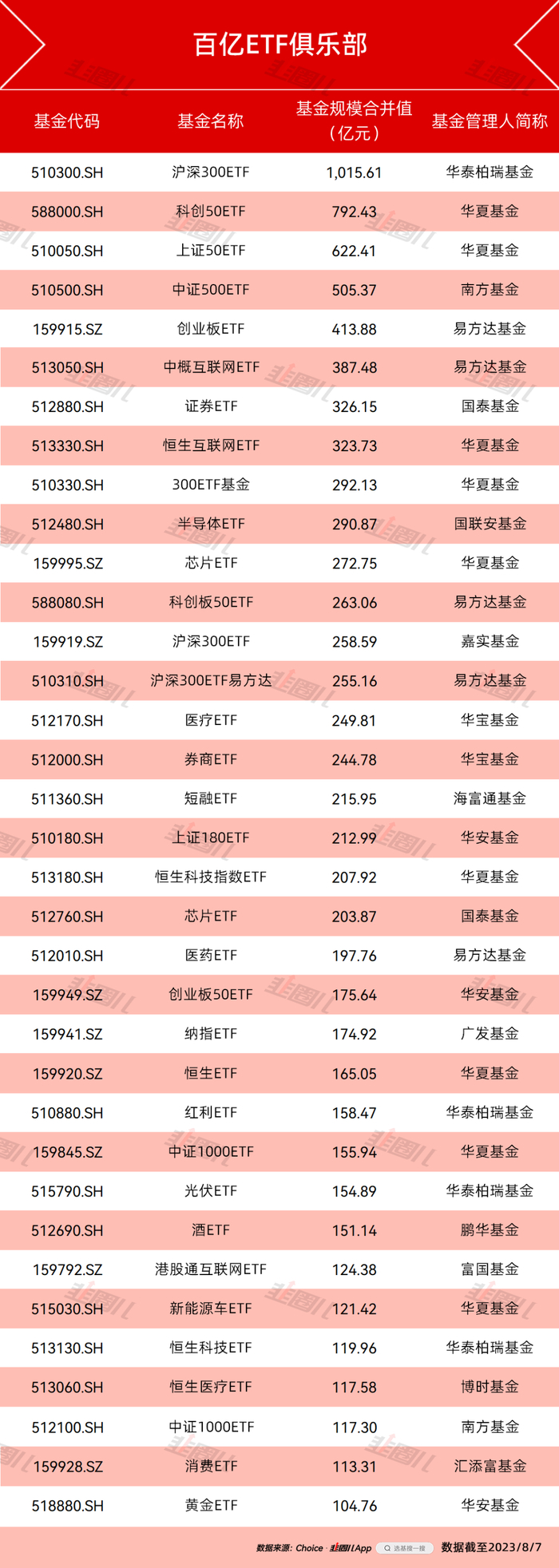 沪深300ETF(510300)的最新规模已经来到了1015.61亿元,是A股第一只千亿规模的股票基金。