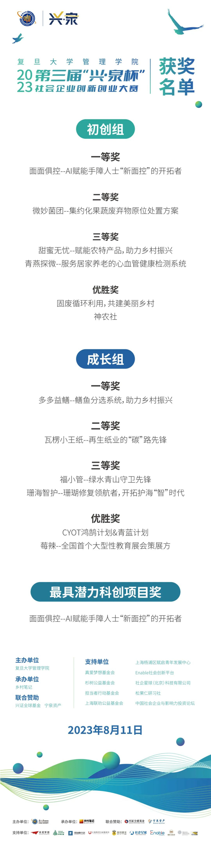 附:第三届复旦管院“兴·泉杯”社会企业创新创业大赛 获奖名单