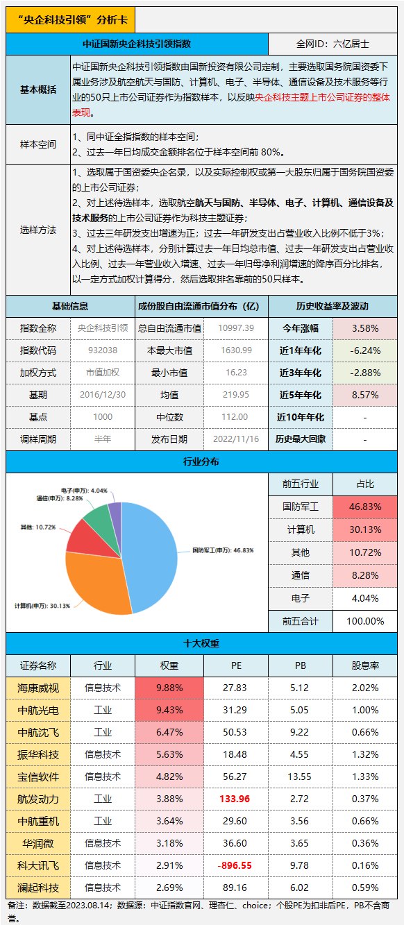 主要涉及航空航天、国防、计算机、电子、半导体、通信等行业,核心服务于国家国防安全、科技创新。该指数因为涉及众多新兴行业,所以估值整体较高,但ROE暂时还没展现出科技股应有的强势。