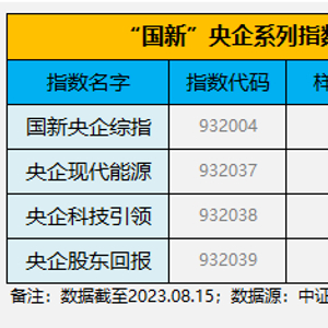 国新央企系列一共4个指数,分别为:国新央企综指、央企现代能源、央企科技引领和央企股东回报,以“1+N”的模式,开展央企指数体系的搭建。