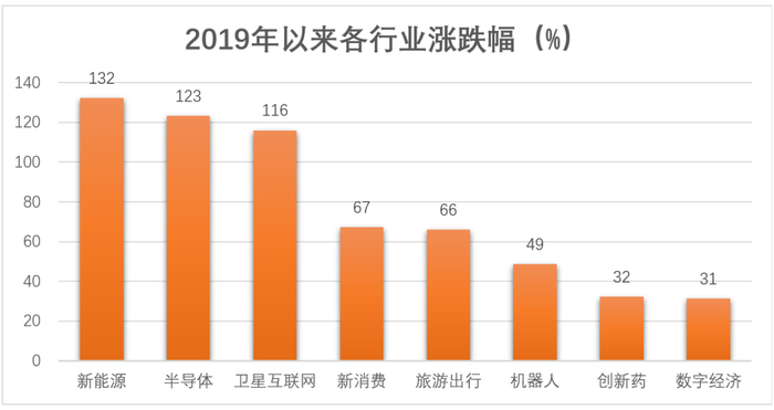 Wind,2019/1/1-2023/8/29,,新能源取884035.WI,半导体取H30184.CSI,卫星互联网取8841289.WI,新消费取995013.SSI,旅游出行取884753.WI,机器人取H30590.CSI,创新药取931409.CSI,数字经济取931582.CSI。市场过往表现不预示未来,也不构成对基金业绩的保证。