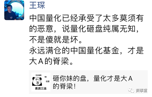 接着,大批的量化投资人包括私募量化机构和公募量化基金经理都纷纷出来“站台”,“直怼”大V,PK主动权益投资人,致使舆情热度居高不小。