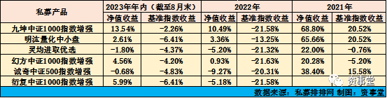 明汯投资的中小盘产品在2021年也有着与九坤类似的超额收益,但2022至今斩获超额的难度上升,且绝对收益也在缩小。与之类似的是幻方资管,超额收益也出现显著“萎缩”。