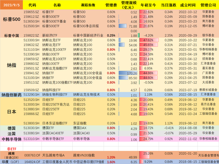 有朋友要求能否把投资非A股、非港股的基金列一下。