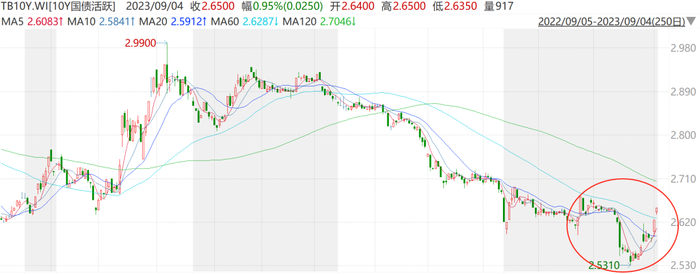 8月份,十年期国债利率最低触及2.5310%,这几天已经回升到2.6390%了。