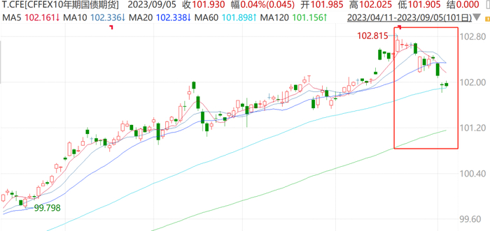 咱们看看十年期国债期货走势: