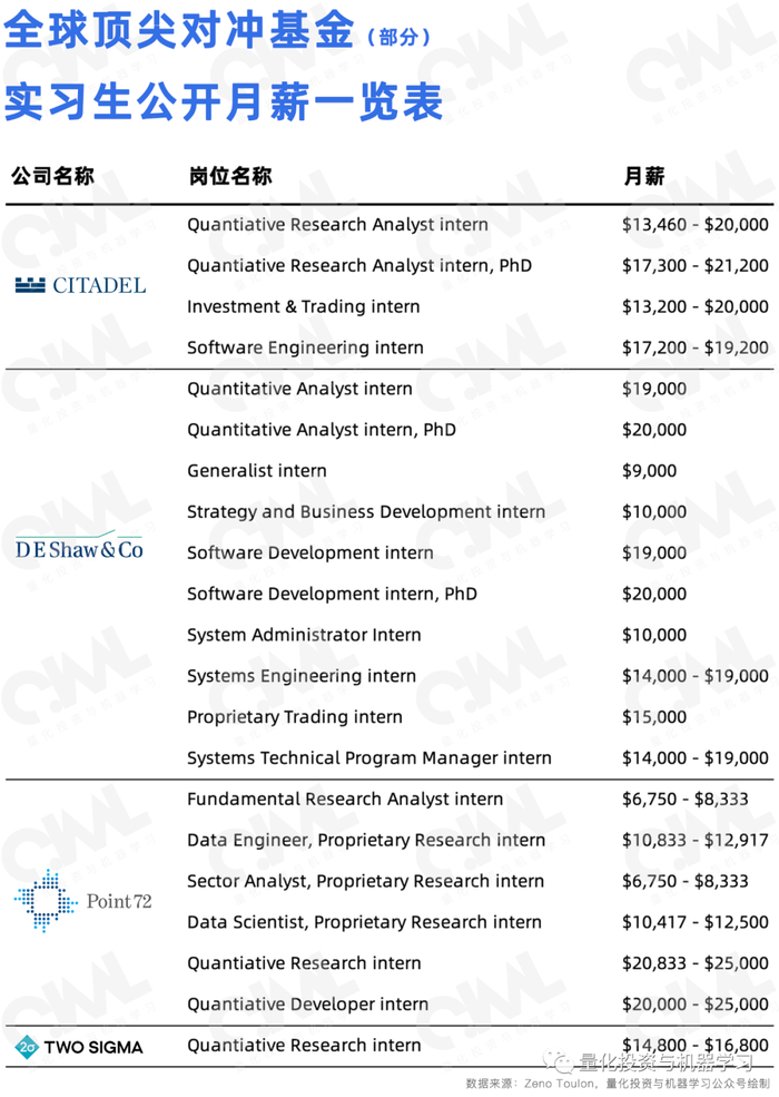 之前,QIML还为大家报道了关于其他顶尖对冲基金公司,他们给实习生薪资的最新数据情况。
