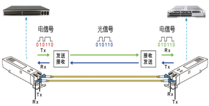 光模块是光通信系统中完成光电转换的核心部件,主要由光器件、电路板、接口等构成,它的工作原理是在发送端把电信号转换成光信号,通过光纤传送后,接收端再把光信号转换成电信号。