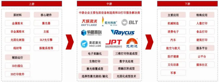 →航空航天:解决大尺寸件、异形件等工件打印痛点。→消费电子:有望在消费电子领域逐步实现大规模应用。→工业机械:在液压等领域逐步实现应用。