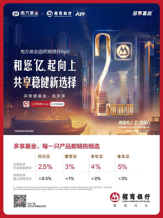 作为招行合作伙伴之一的南方基金,其凭借优秀的业绩表现、卓越的客户持有体验,跻身招商银行多享基金中的一员。