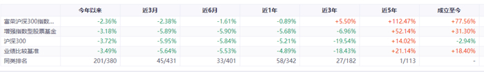 其中,富荣沪深300指数增强是唯一实现净值上涨的产品,近3年实现正收益5%,跑赢沪深300指数约26%!