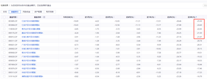 据ifind数据显示,截至9月19日成立3年以上的沪深300指数增强产品共有68只(注:包括A、C份额),近3年沪深300指数下跌21.46%,跑输沪深300指数的增强产品只有4只,占比为6%。