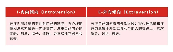 其实MBTI的爆火,并不是最近才出现的,但伴随着年轻一代愈发增长的社交需求,在社交群体之间掀起了一股“复古”风潮。大家在通过MBTI测试结果给自己打上标签的同时,也在传递着我们的社交倾向及情感需求。根据MBTI测试中不同字母所蕴含的不同意义,可以将测试结果分为4个倾向维度,分别代表不同的指向: