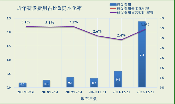 近年研发费用(资本化处理)、研发占营收比图