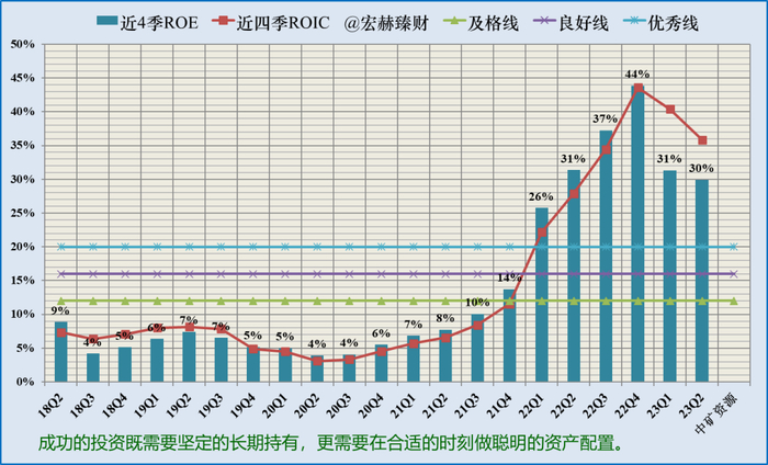 滚动近四季ROE和ROIC走势图