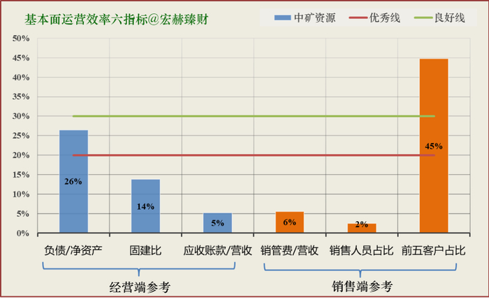 关注六指标中有4-5项在红色优秀线以下的企业为好。