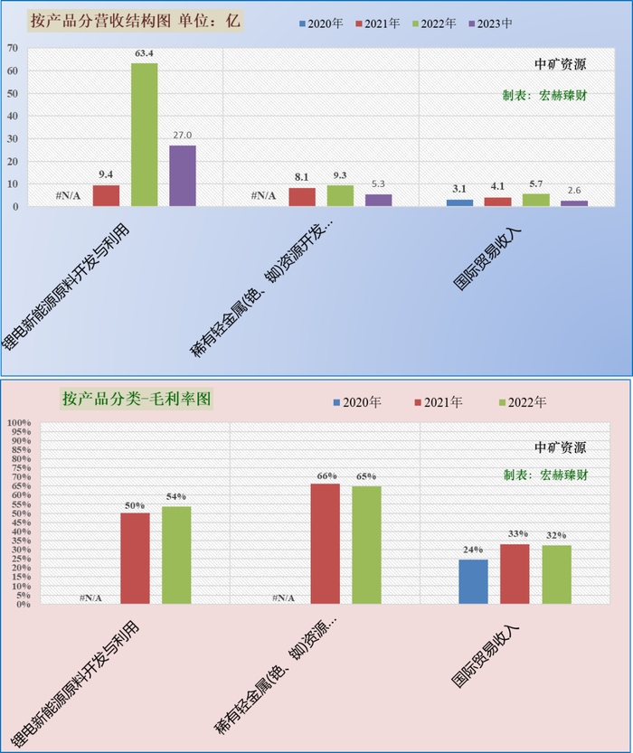 第一主营业务锂电新原料占营收比权重为75%,近三年同比增幅分别为:--%、--%、573%;当前毛利率54%。