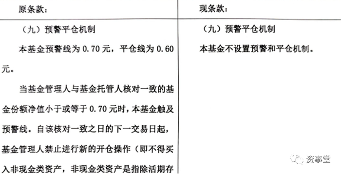 这种背景下,XX至善在今年6月20日向持有人发布公告,不再设置预警和平仓机制(此前,上述私募产品预警线为0.70元,平仓线为0.60元)。