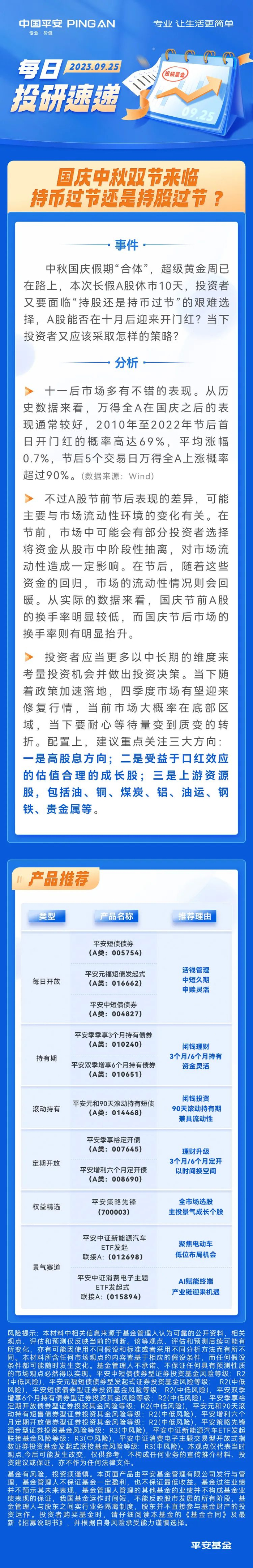 【每日投研速递】0925-国庆中秋双节来临 持币过节还是持股过节?
