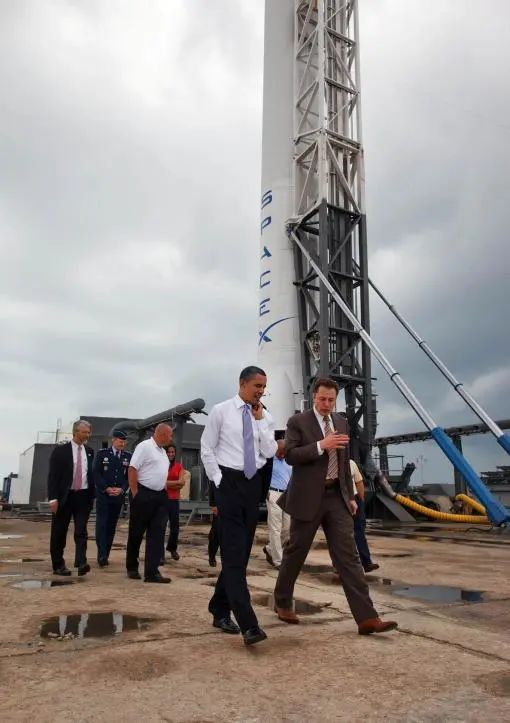 2010年,马斯克与美国总统奥巴马在卡纳维拉尔角(图片来自《埃隆·马斯克传》)