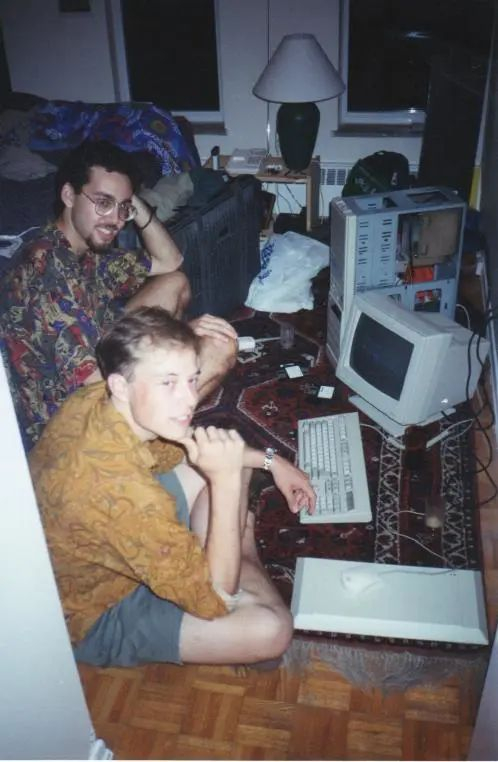 伊隆和好友纳瓦德·法鲁克在安大略省金斯敦的皇后大学(图片来自《埃隆·马斯克传》)