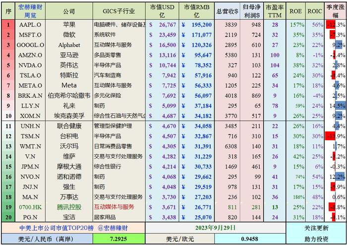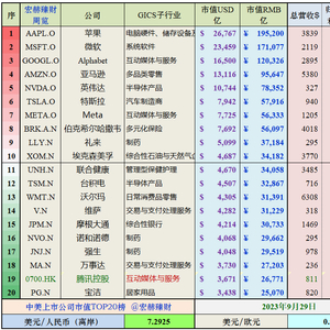 中美上市公司市值看看 | 2023Q3
