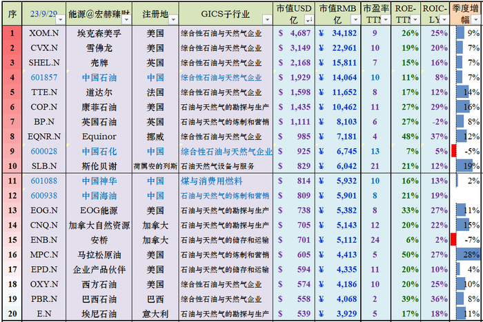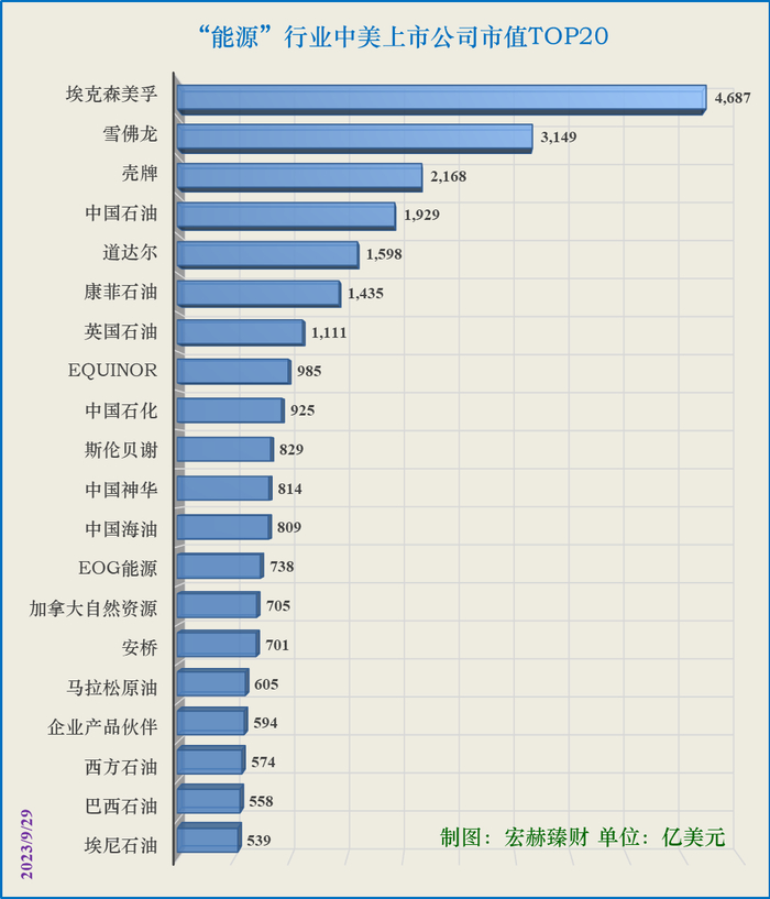 9、中美“能源”行业部门市值Top20