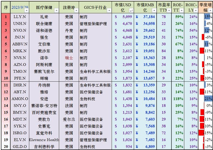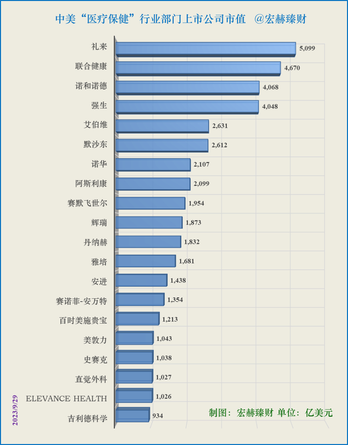 4、中美“医疗保健”行业部门市值Top20★