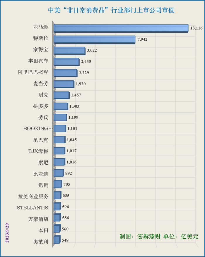 5、中美“非日常消费品”行业部门市值Top20