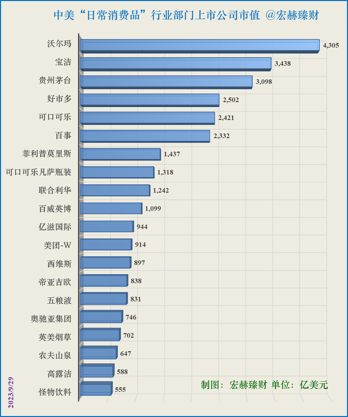 3、中美“日常消费品”行业部门上市公司市值Top20