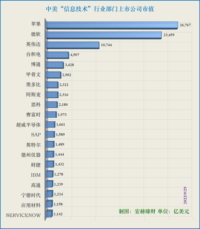 1、中美“信息技术”行业部门上市公司市值Top20