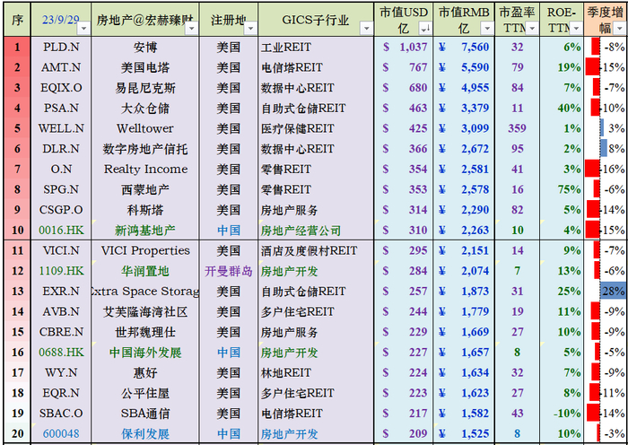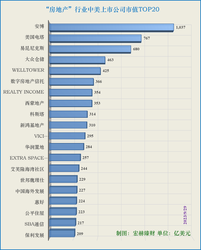 10、中美“房地产”行业部门市值Top20