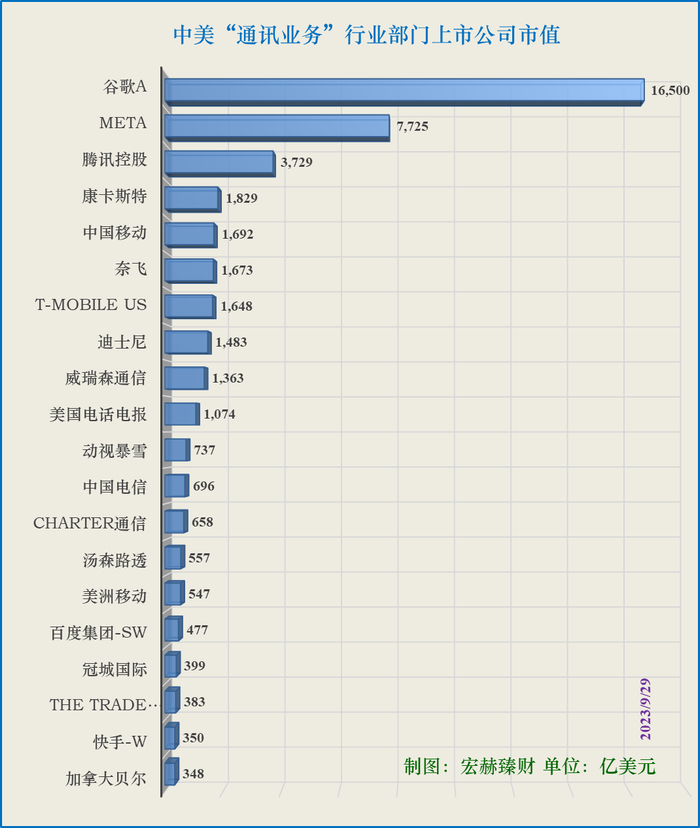 2、中美“通讯业务”行业部门市值Top20★