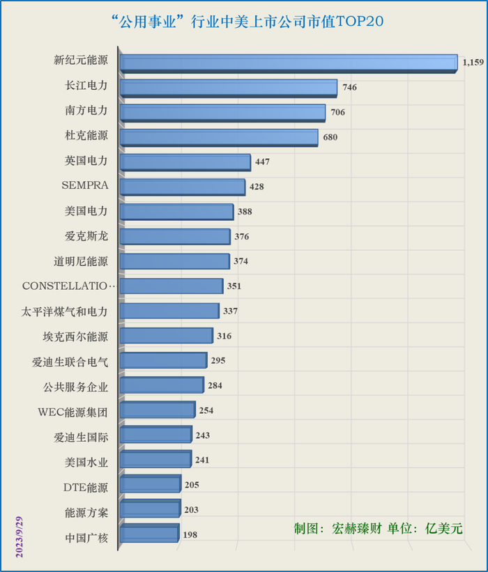 11、中美“公用事业”行业部门市值Top20