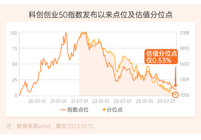 ★ 估值分析:当前科创创业50指数估值处于发布以来0.53%分位数,估值较低,或正是定投积累高性价比筹码的好时刻。