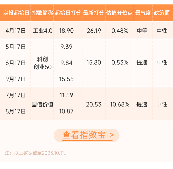 一起投计划是指数基金定投计划,遵循低估开投、高估不投、目标止盈的规则。每月17日推出一个定投计划,选取估值、景气度、政策面综合打分最优的指数基金定投。具体打分规则请点此查看:指数宝打分规则