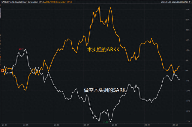木头姐火了之后,市场上就出现了一只高举大旗做空木头姐的ETF,