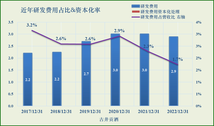 近年研发费用(资本化处理)、研发占营收比图