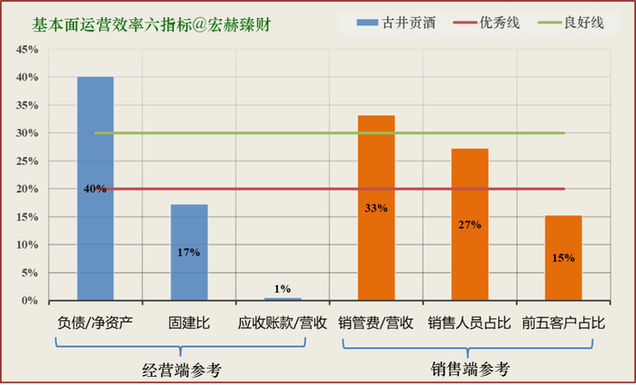 关注六指标中有4-5项在红色优秀线以下的企业为好。