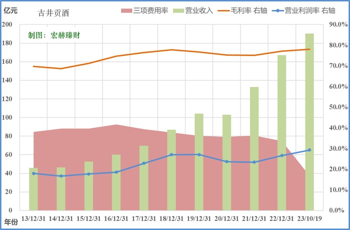 观察三项费用率、毛利率、营业利润率处于营收的位置