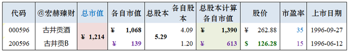 古井贡酒 B股当前市值613亿,两地按各自股本综合市值是1214亿。
