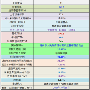 古井贡酒 A股当前市值1390亿,位列第10位;市盈率35倍。