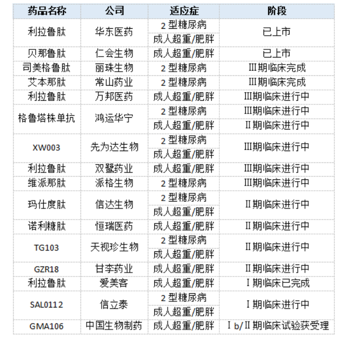 截至目前,仅仁会生物的贝那鲁肽注射液、华东医药的利拉鲁肽利注射液获批上市。