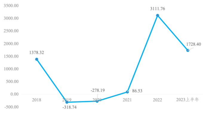 图表15 2018年-2023年中非货币ETF市场整体资金净流入额(亿元)