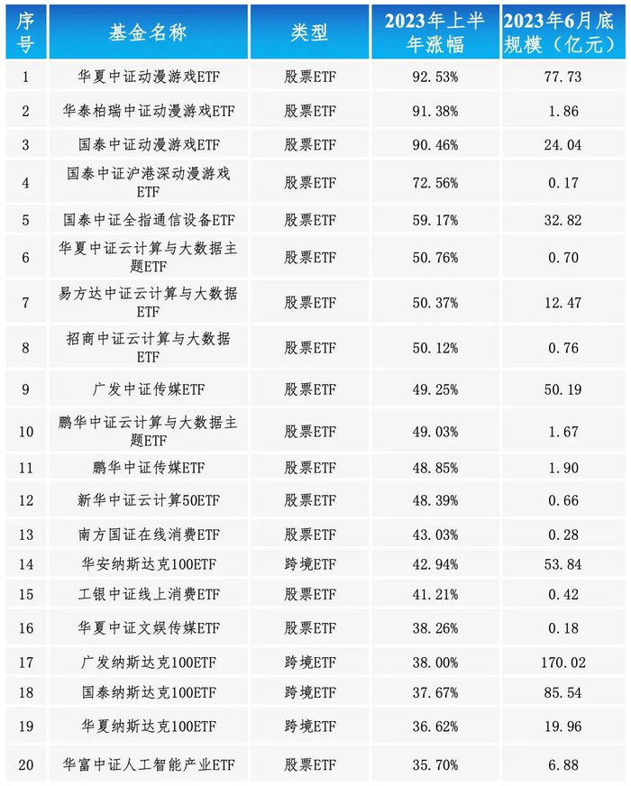 2023年上半年,创业板、科创50 ETF产品资金净流入最多,宽基ETF成为资金抄底的重要工具。半导体芯片、医药等超跌领域,以及游戏、互联网等人工智能热点领域都吸引了大量资金净流入。新发ETF产品中,证券指数ETF和绿色能源ETF等产品资金净流入较多。