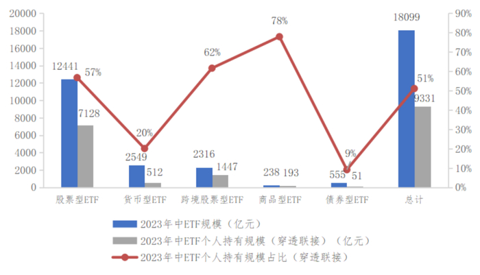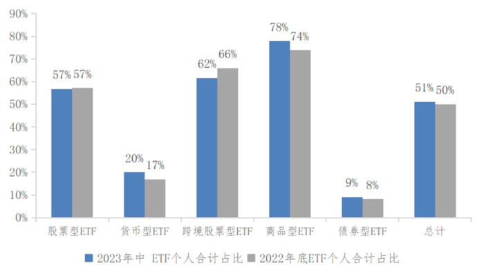 图表2 2023年中不同类型ETF个人投资者持有情况